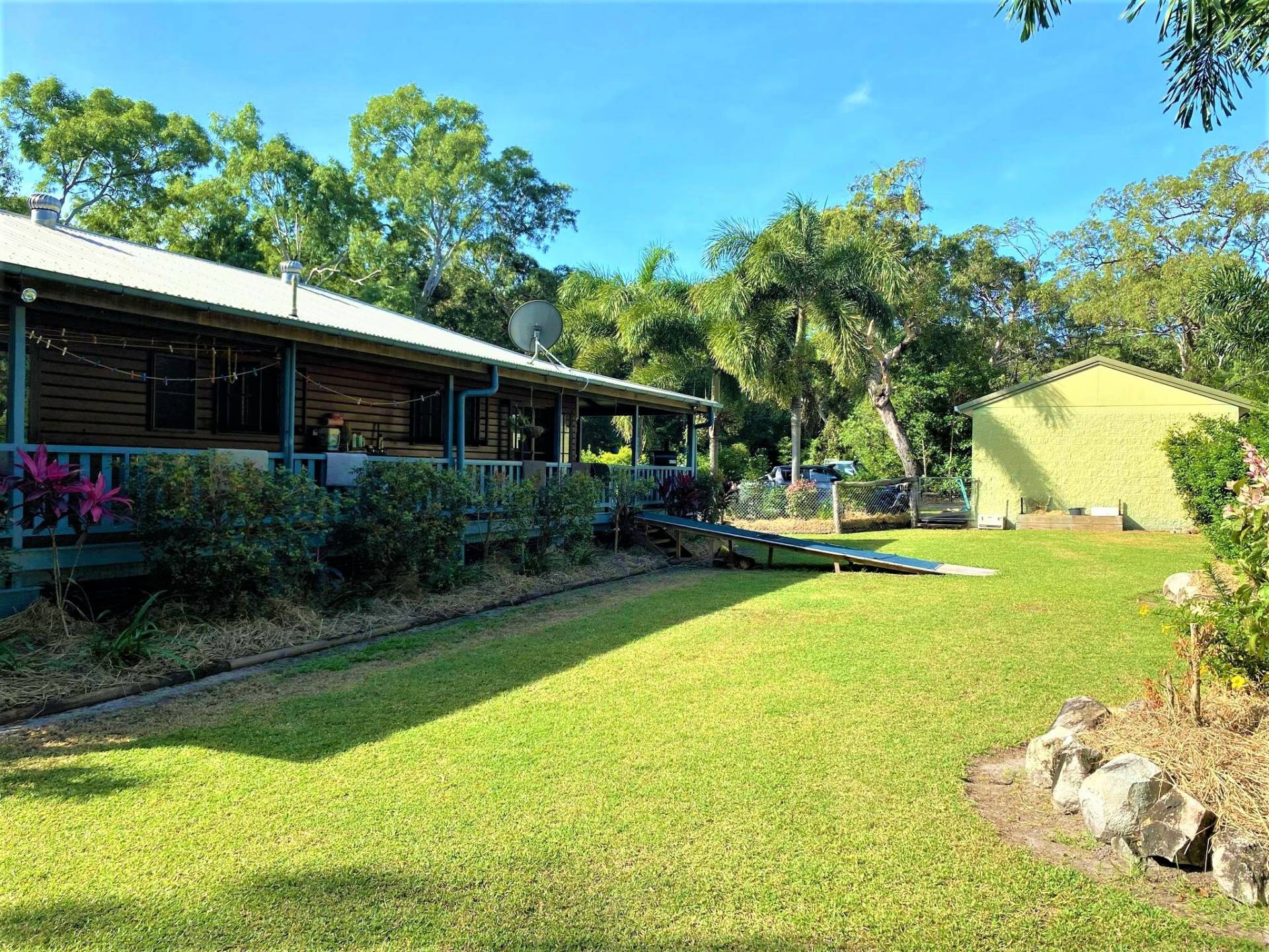 Country style family home, built for tropical living with french doors and windows, polished timber floors, wrap-around timber veranda with a fenced off house yard, 2 bay block shed with a lockable room, and a seasonal creek that runs through the property.